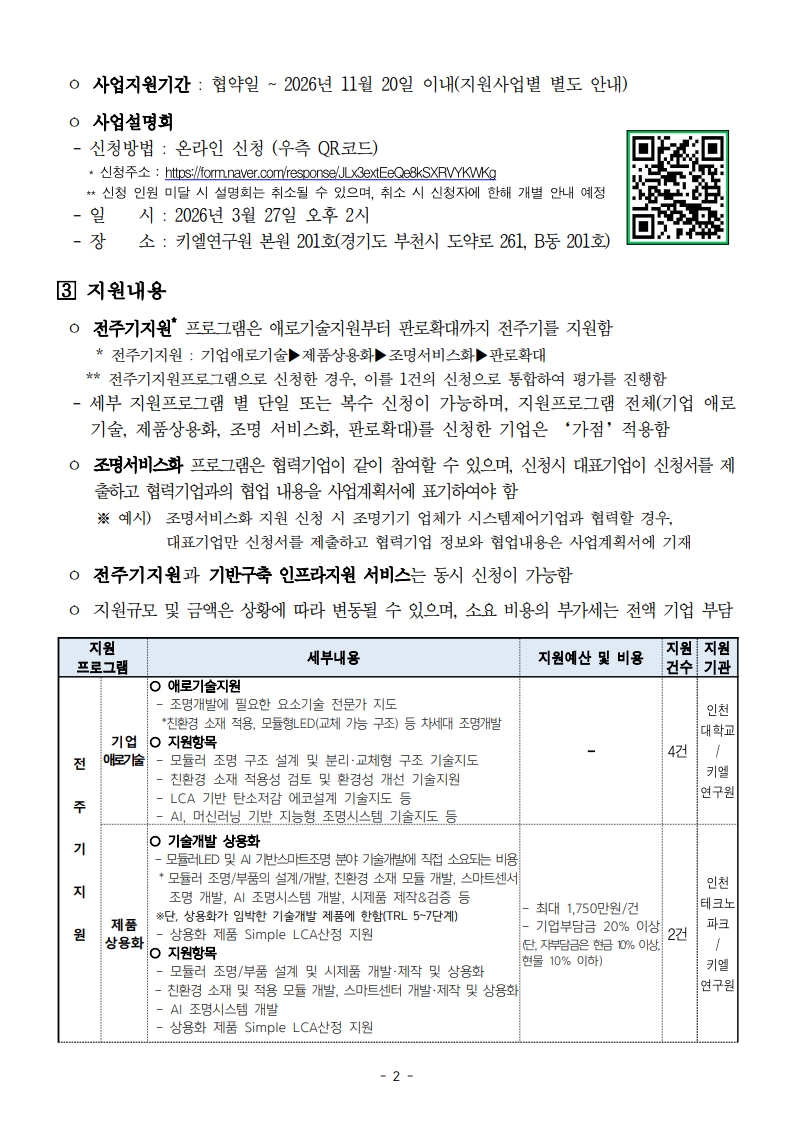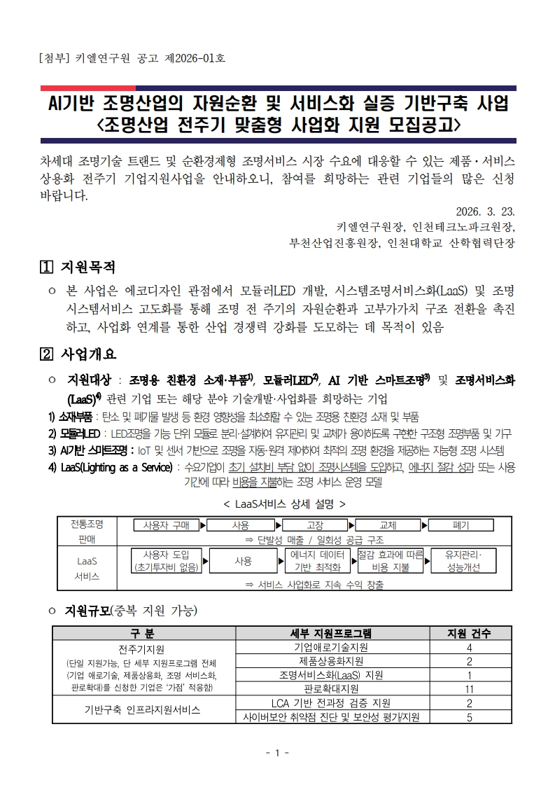 [인천테크노파크] 2026년 조명산업 전주기 맞춤형 사업화 지원 참여기업 모집