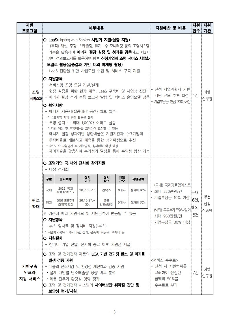 「2026년 조명산업 전주기 맞춤형 사업화 지원」참여기업을 모집하고 있습니다.