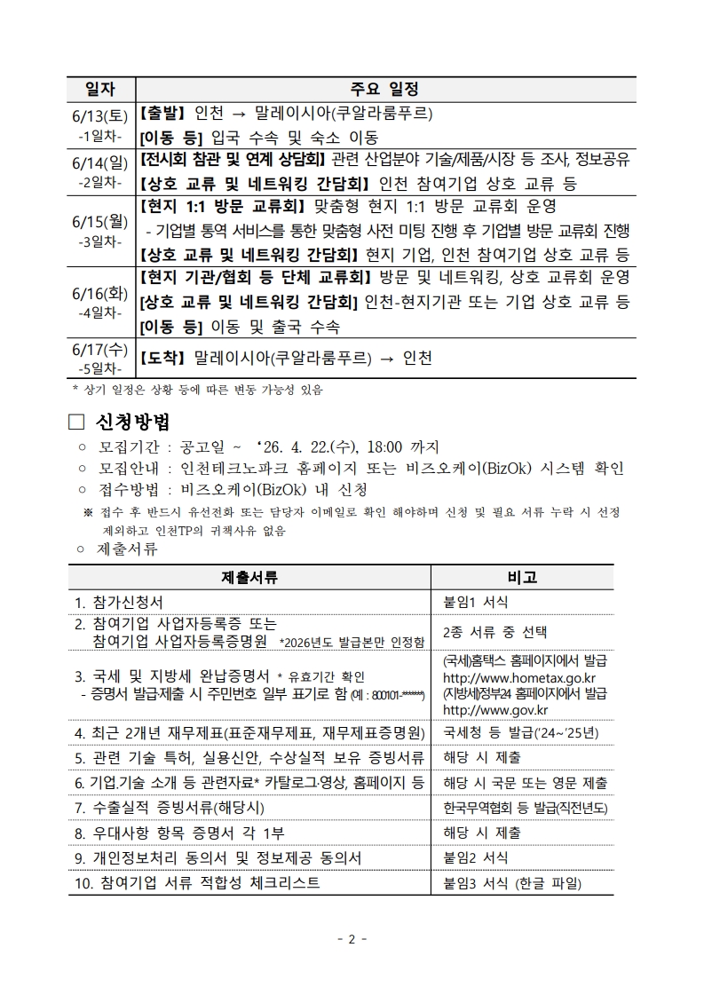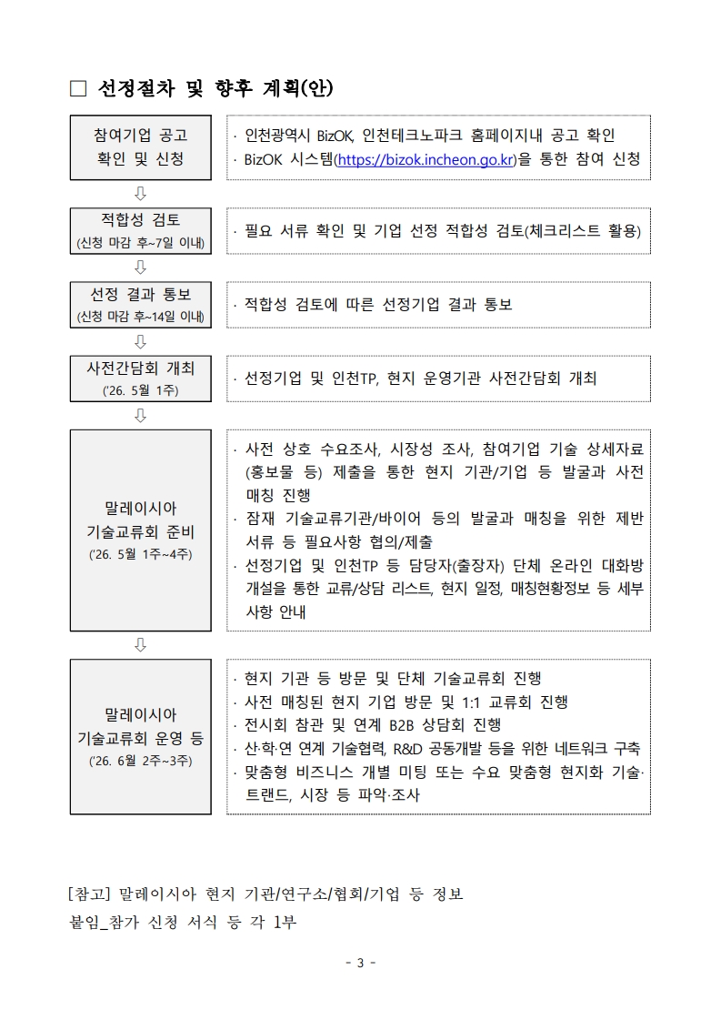 [인천테크노파크] 경영지원센터 중소기업 말레이시아 기술교류 지원사업 참여기업 모집