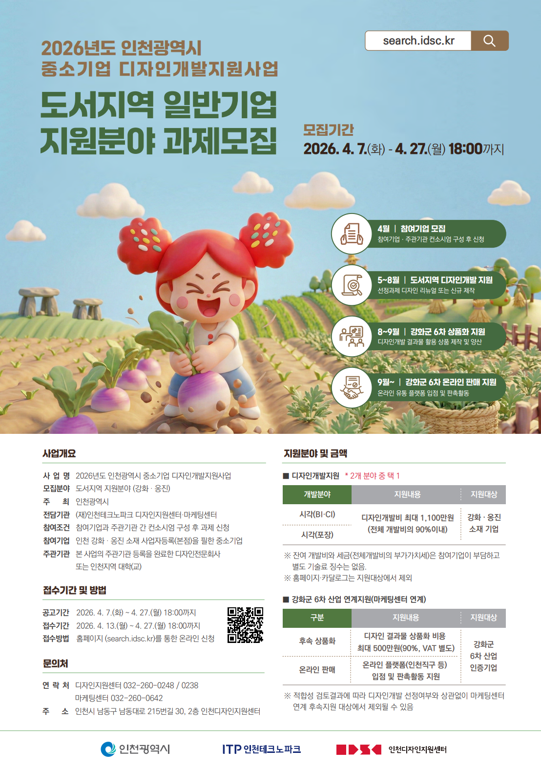 [인천테크노파크] 디자인지원센터 중소기업 디자인개발지원사업 도서지역(강화,옹진) 지원분야 과제 모집