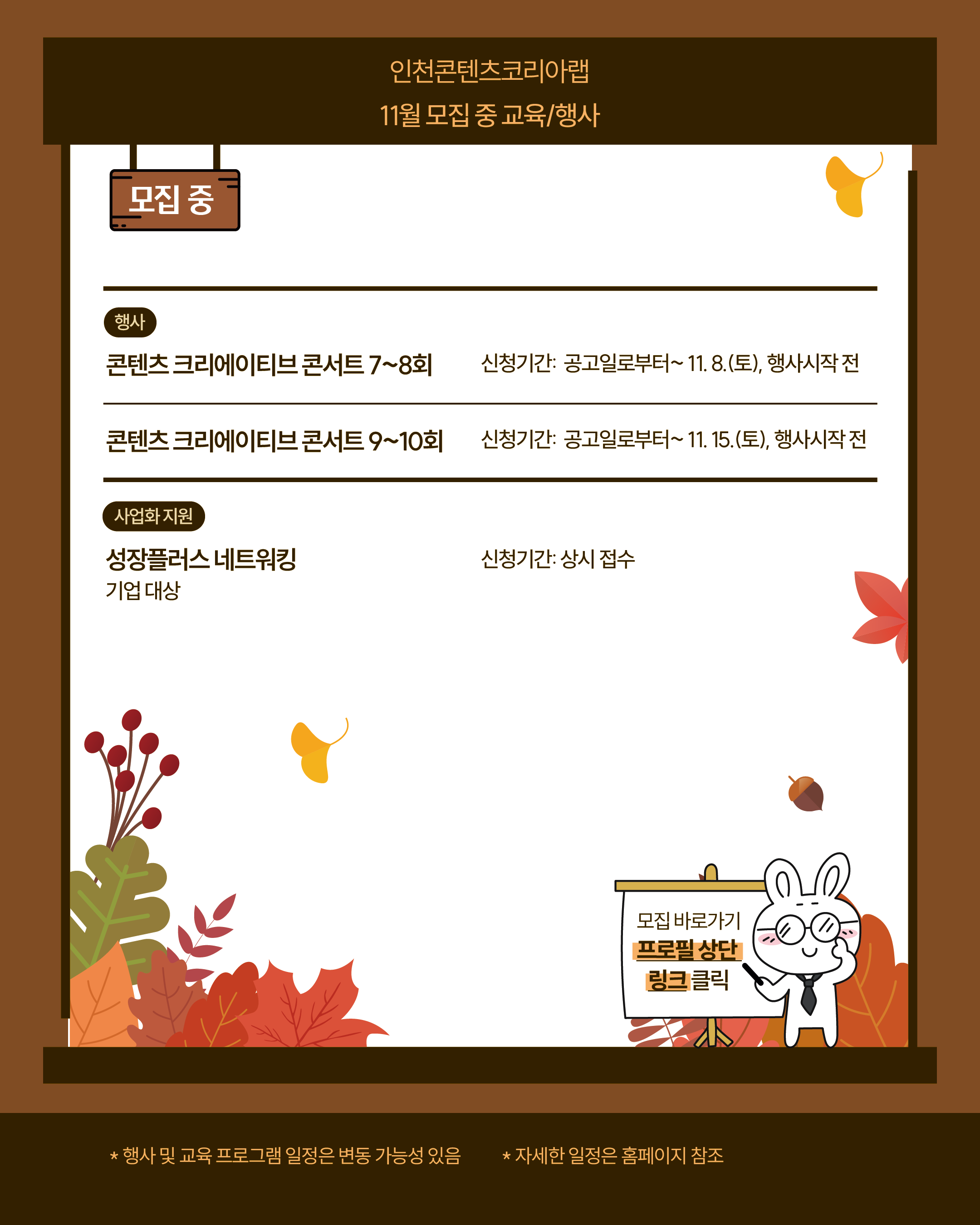 [카드뉴스] 이달의 프로그램 : 11월 교육 및 행사