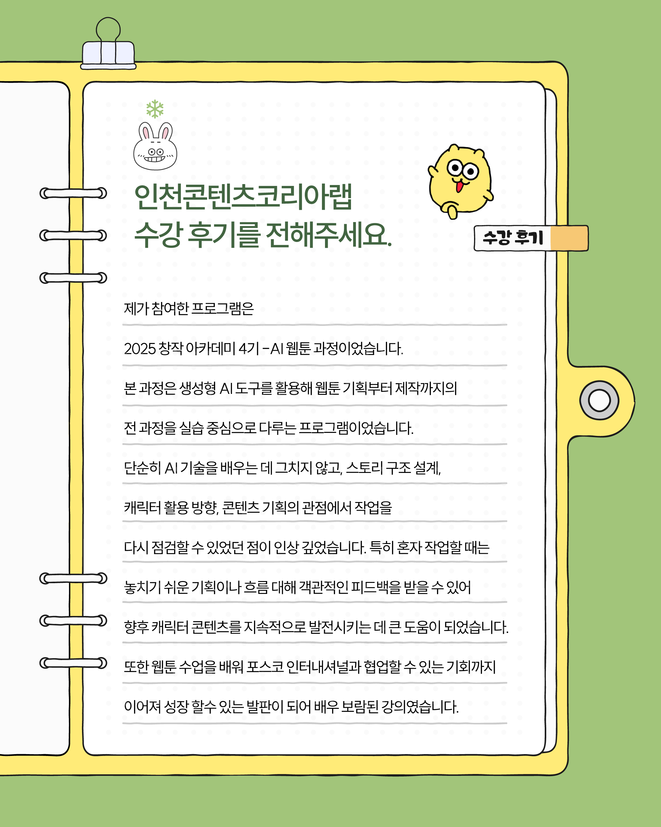 인천콘텐츠코리아랩 인스타그램을 팔로우하면 가장 빠르게 콘텐츠를 만나보실 수 있습니다😄