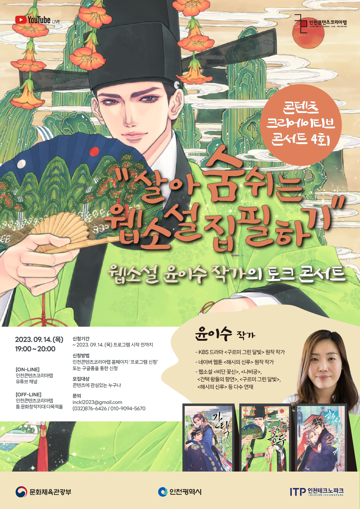 [콘텐츠 크리에이티브 콘서트 4회] “살아 숨쉬는 웹소설 집필하기” 웹소설 윤이수 작가의 토크 콘서트