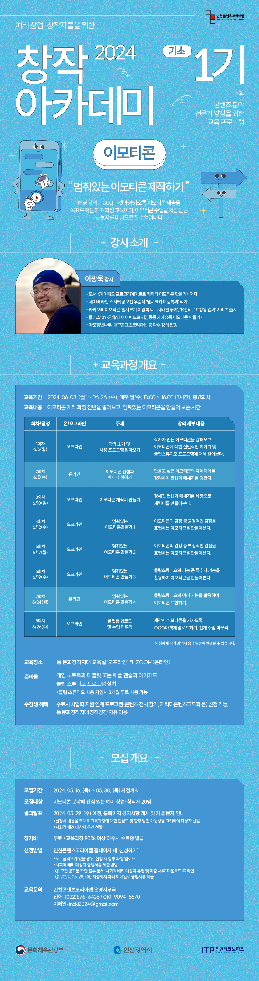 [2024 창작 아카데미 1기] 이모티콘(기초과정) 수강생 모집